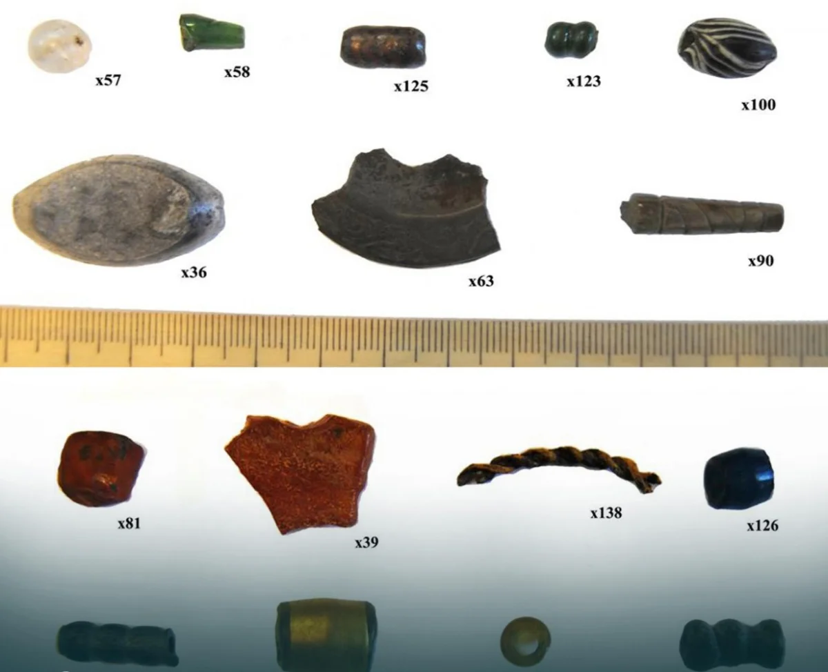 Это фрагменты керамики, стеклянных браслетов и шиферное пряслице.