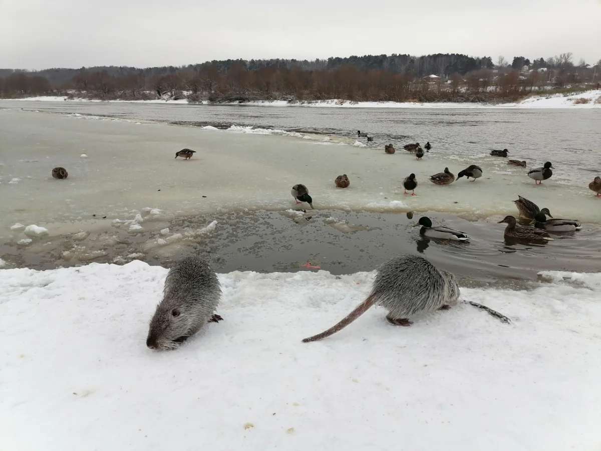 В Калуге нутрии Понтоши остались зимовать на Воробьевской переправе