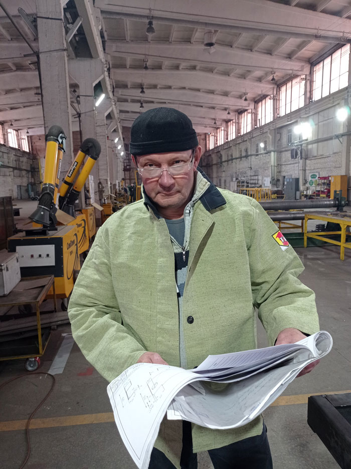— Почему выбрал это предприятие? От ребят слышал отзывы, что тут всегда можно заработать, лояльное начальство, дружный коллектив, — говорит Олег Егорович. — Я делаю металлоконструкции. Работу выполняю в паре с коллегой: читаем чертежи, занимаемся сборкой металлоконструкций на прихват, потом производим сварочные работы. График — пятидневка с 8 до 17 позволяет и с семьёй побыть. Я женат, у меня взрослая дочка, двое внуков. Сейчас дочь живёт с нами, её муж — контрактник на СВО. Теперь внуки меня утром провожают, вечером встречают.