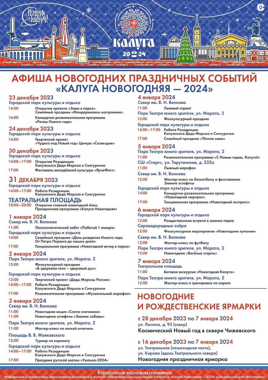 В Калуге опубликовали афишу новогодних праздников