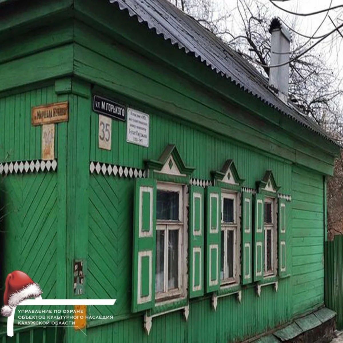 В доме на улице Жукова поэт Булат Окуджава жил в 1952 году. В Калужскую область его направили работать учителем после окончания Тбилисского государственного университета. Сначала он работал в селах Шамордино и Высокиничи, а затем преподавал русский язык в школе №5 Калуги.
