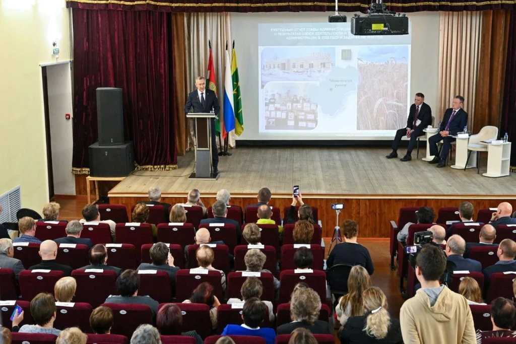 В Мещовске прошел отчет главы администрации района Владислава Полякова за прошлый год. На нем присутствовал губернатор Владислав Шапша.