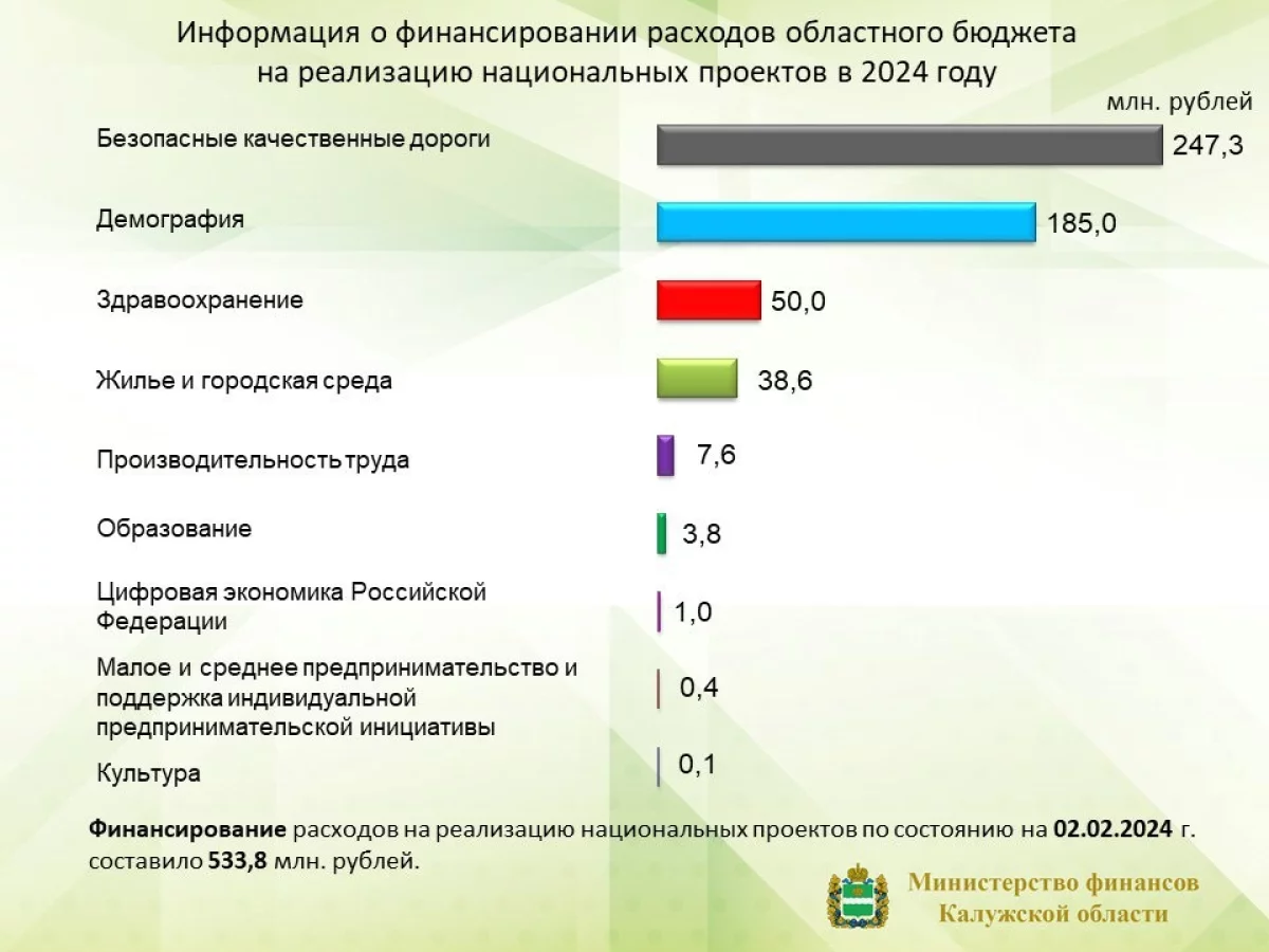 Нацпроекты в Калужской области профинансировали на 533 миллиона рублей