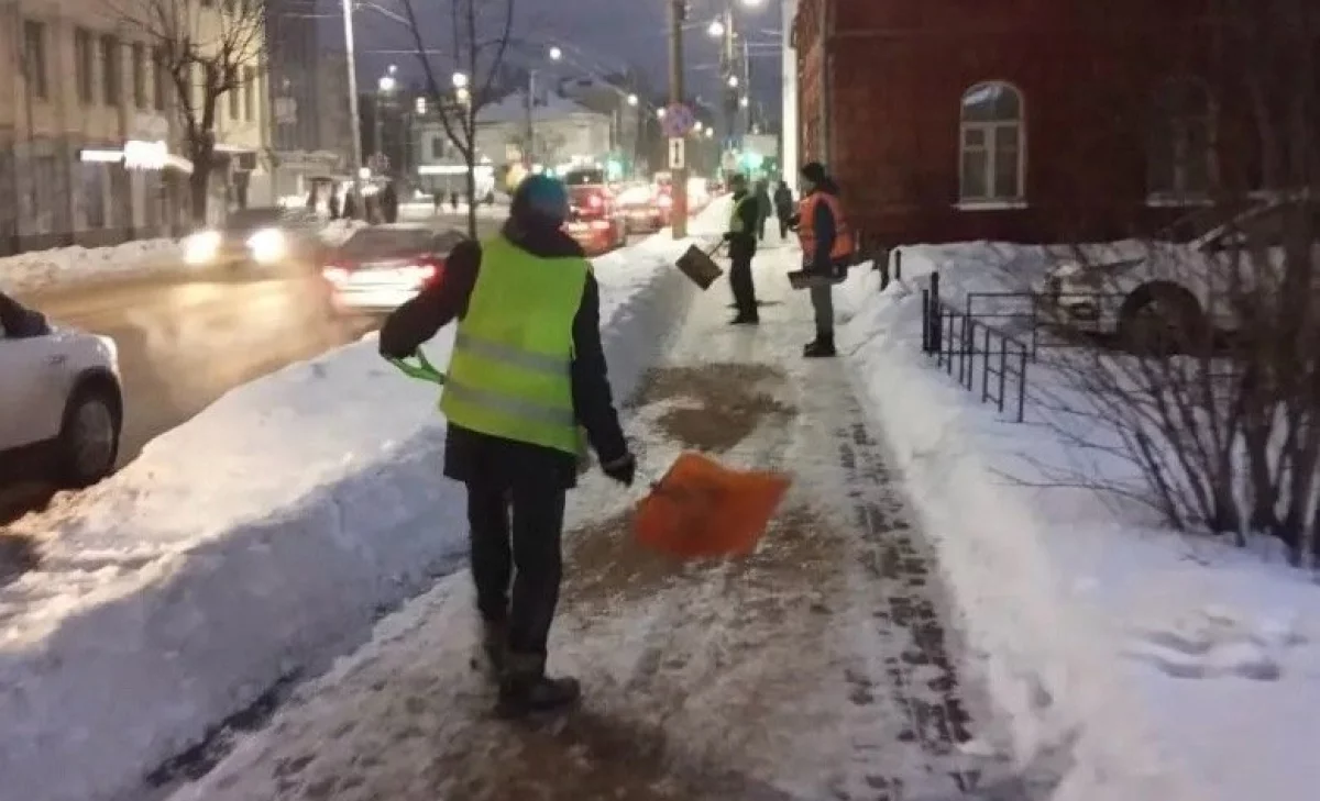 Механизированная обработка тротуаров началась с 22 часов вечера воскресенья. Учитывая нехватку техники и водителей, к работам были привлечены дорожные рабочие, которые вручную посыпали тротуары, переходы, остановки и лестницы. Днем обработкой тротуаров занимались 6 единиц техники и 115 дорожных рабочих.