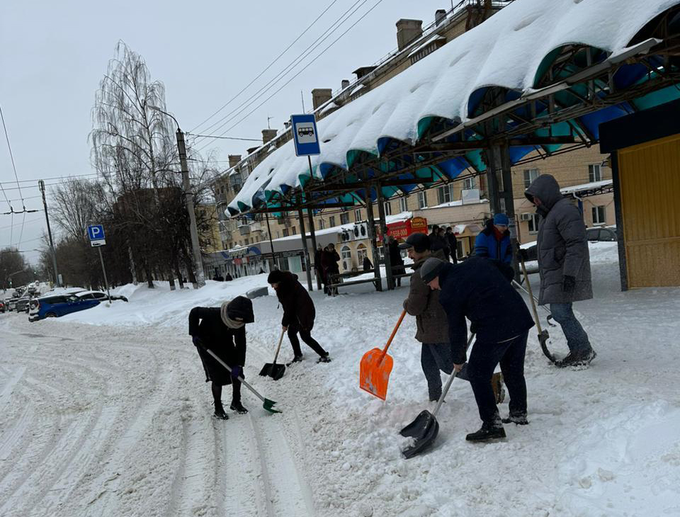 Городской голова Калуги уже в третий раз за зиму выгнал с лопатами на улицы сотрудников управлений городской управы. Сотрудники управления социальной защиты Калуги махали лопатами на остановках общественного транспорта по улице Глаголева и по улице Московской – при въезде на Московскую площадь.