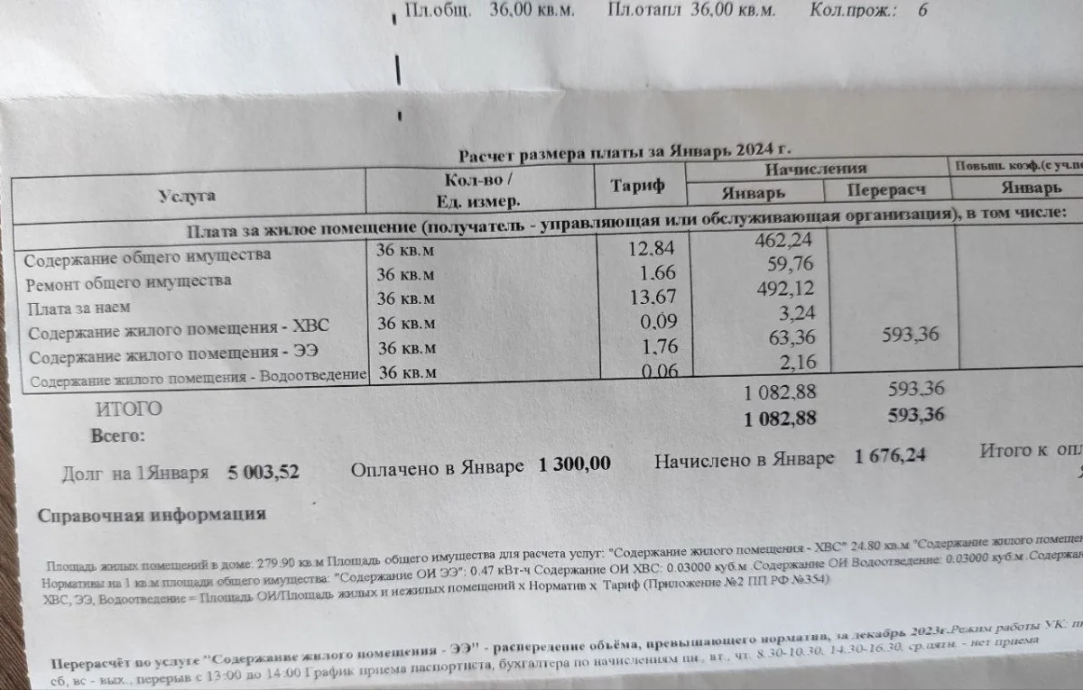 - В квитанции пишут формулу расчета по нормативам, причем, неверную, хотя у нас есть общедомовой счётчик. А потом нам приходят астрономические суммы, - рассказывает она. - Неоднократно обращались к ним и с устными, и с письменными претензиями по таким огромным начислениям, но ответа нет. Единственное, что они сделали- это отключили незаконное подключение сараев к общедомовому счётчику, и то после того, как лично я несколько раз их об этом просила. Но сумма начислений после этого меньше не стала.