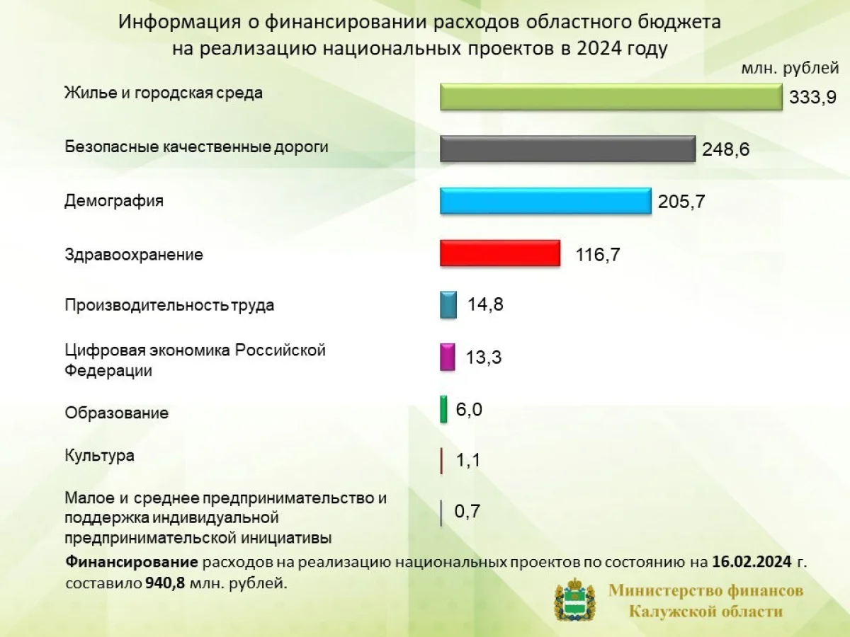Нацпроекты в Калужской области профинансировали на 940 миллионов рублей