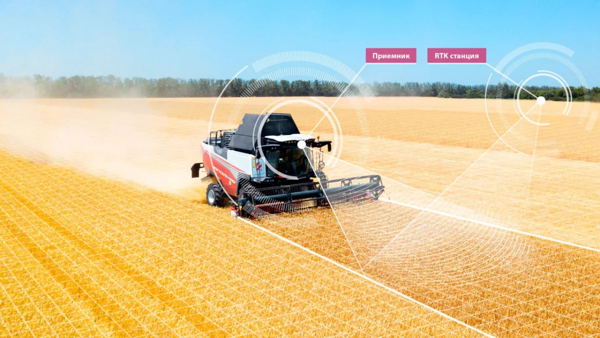 Почему? Всё просто. Мы можем управлять траекторией движения комбайна и вести его параллельно предыдущему гону. Система повышает точность прохода до 2,5 сантиметров, чему способствует базовая RТК-станция.