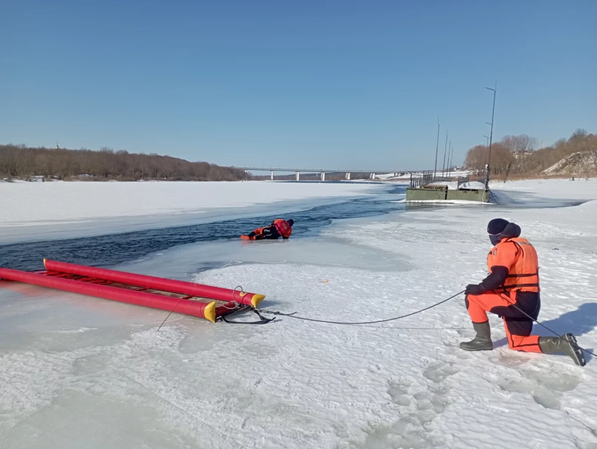 Также в учениях приняли участие спасатели-водолазы, они отработали навыки поиска пострадавших подо льдом.