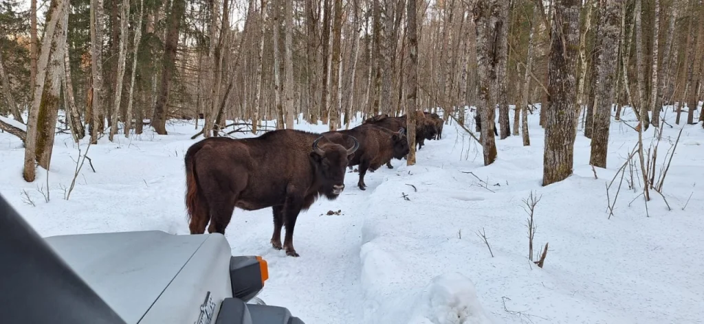 Всего в этом калужском заповеднике обитает более 400 зубров.
