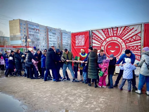 Сударыня Масленица и веселые Скоморохи проводили среди калужан соревнования на ловкость и силу.