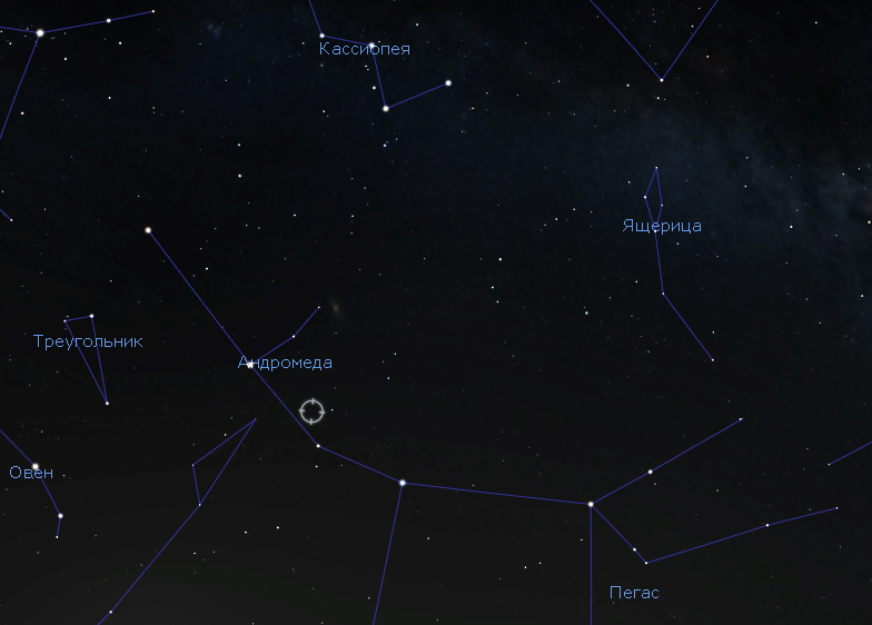 Искать комету следует примерно через час после захода Солнца в районе созвездия Андромеды. Она быстро движется в восточном направлении. Точные координаты кометы можно уточнить на сайте.