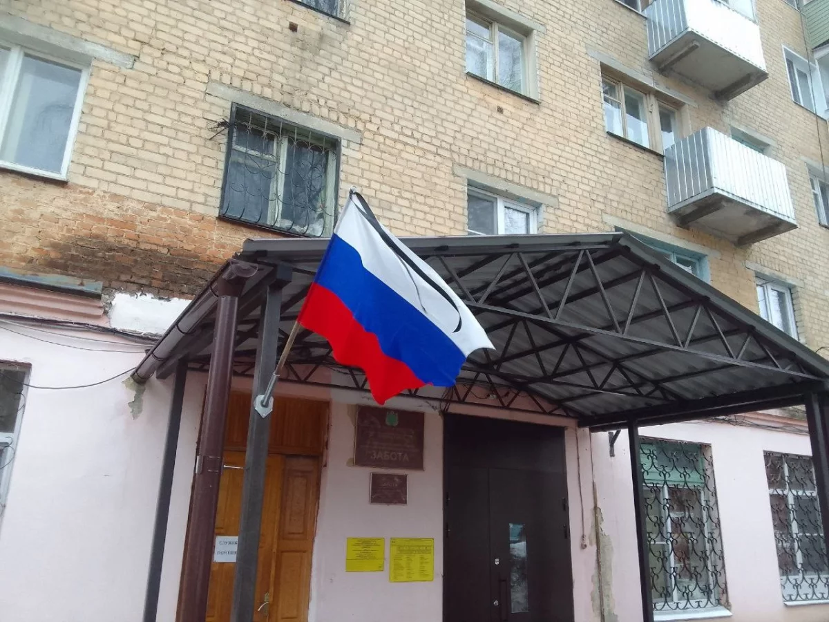 В память о погибших во время теракта в «Крокус Сити холле» на флагах зданий в Калуге повесили траурные ленты.