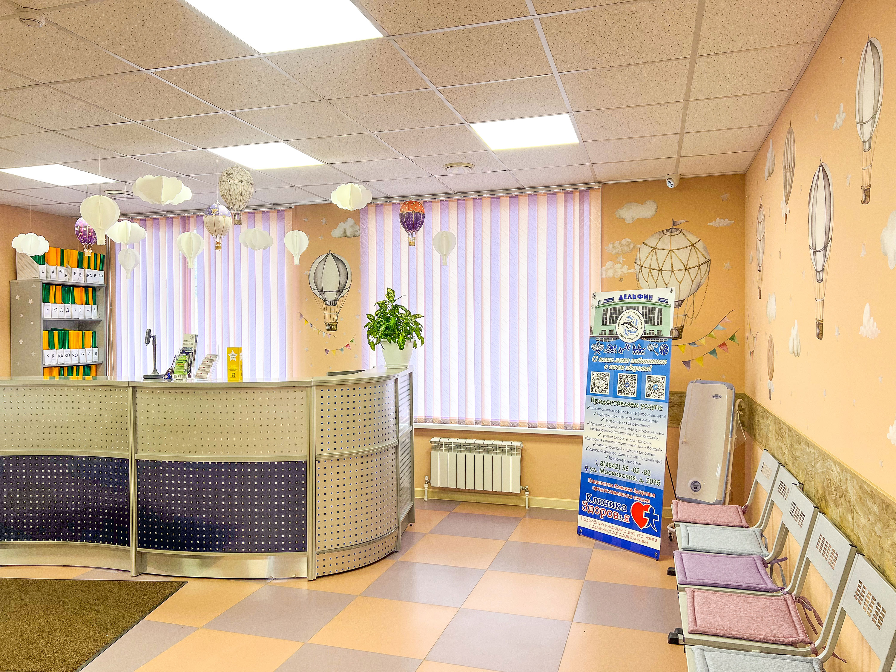 Медицинский центр радует глаз уже с порога. Сразу на входе стоят несколько корзин для бахил, для маленьких посетителей они яркого цвета. Такая приятная деталь поднимает детишкам настроение и скрашивает дальнейший прием у врача.