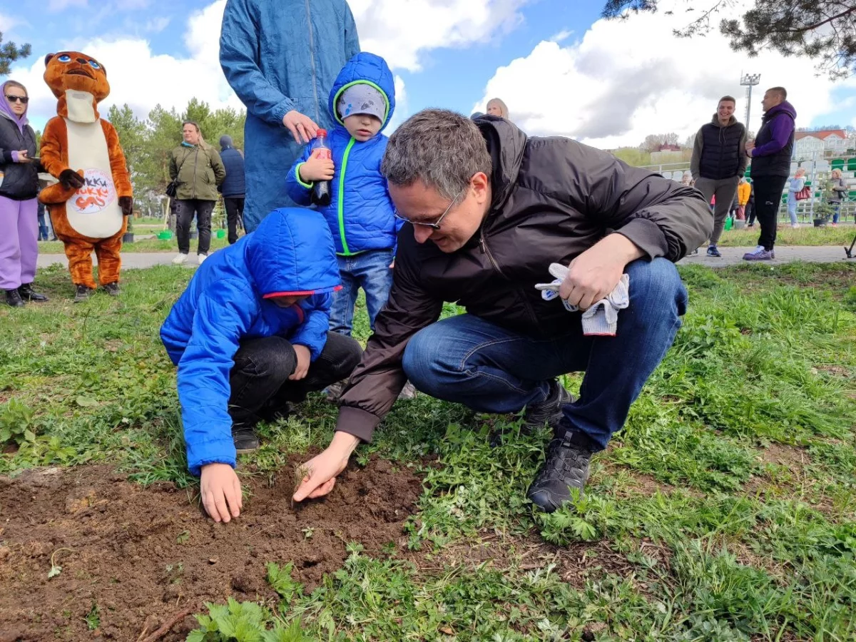 К посадкам хвойных деревьев приложил руку и городской голова Калуги. Дмитрий Денисов помог малышам посадить кедр, а затем и сам взял в руки лопату.