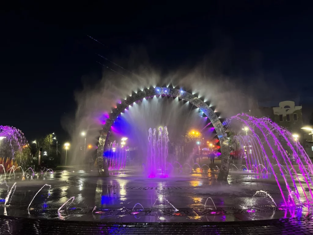 В этом году фонтану рядом со строящимся Театром юного зрителя добавили проекции с видами города.