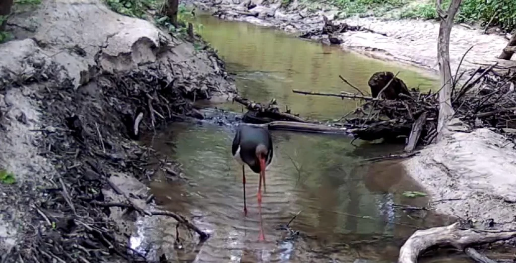 В заповеднике «Калужские засеки» на фотоловушку попал черный аист.
