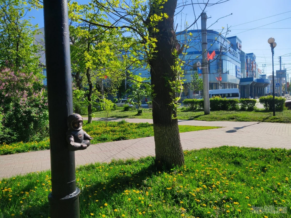 Фигурка расположена рядом с тротуаром ближе к улице Кирова.