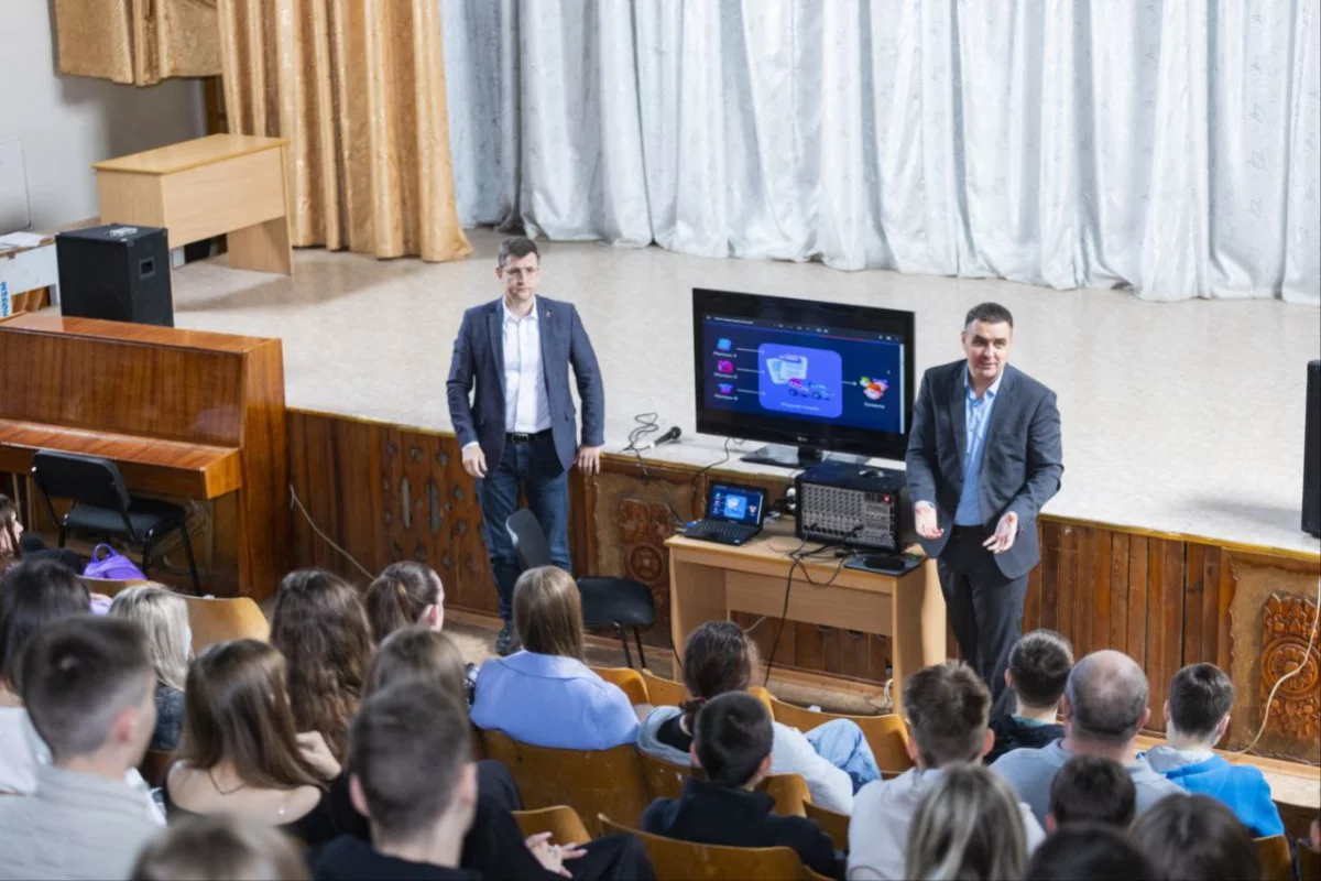 Со школьниками встретились заместитель губернатора Калужской области Дмитрий Разумовский, директор регионального Проектного офиса Александр Архангельский и замминистра цифрового развития, связи и массовых коммуникаций ЛНР Владимир Харитонов.