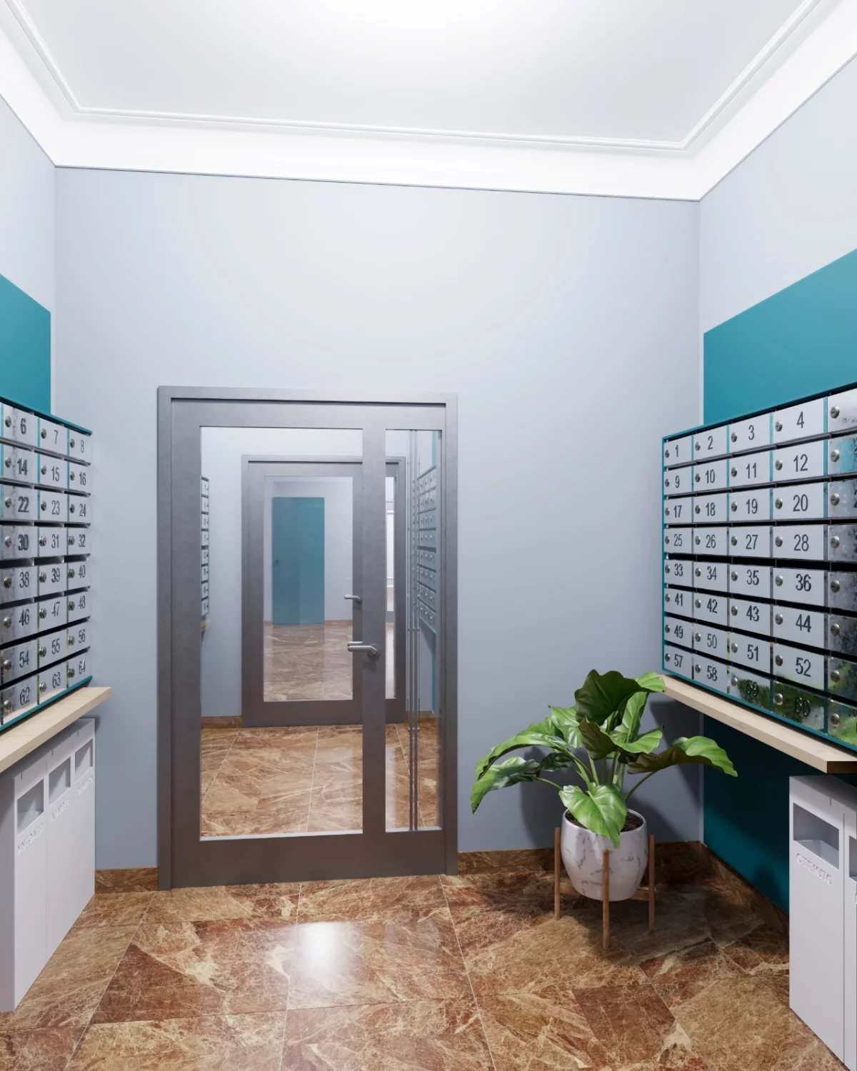 В подъезде будет дизайнерское решение входной зоны, консьерж, кладовые на двух этажах и 4 лифта — 2 грузовых и 2 пассажирских, которые проведут до подземной парковки на 143 места. Там можно будет оставить не только автомобиль, но и мотоцикл. Она обеспечит отсутствие машин во дворе.