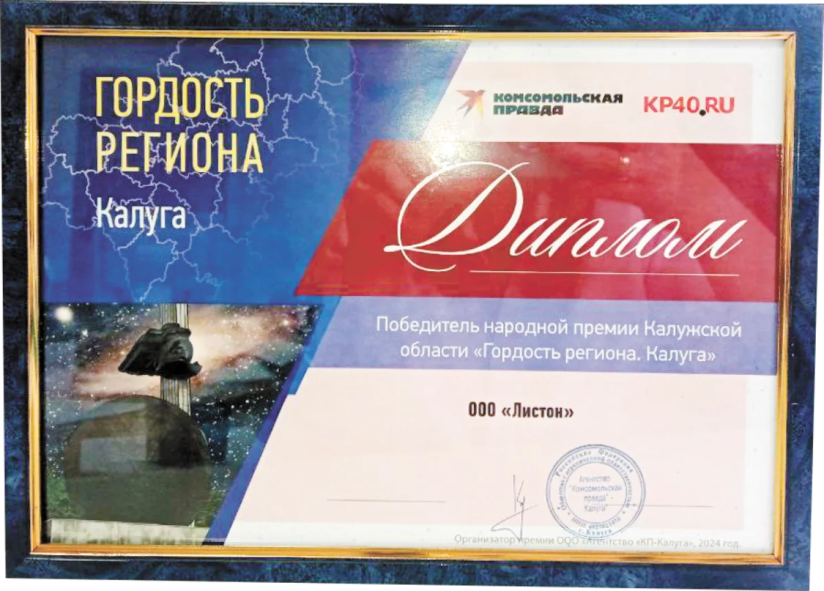 Деятельность компании «Листон» подтверждает, что предприятия, которыми гордится наш регион, в свою очередь стремятся прославить Калужскую область и вкладывают в это все свои силы и знания. А такая взаимоподдержка всегда эффективна.