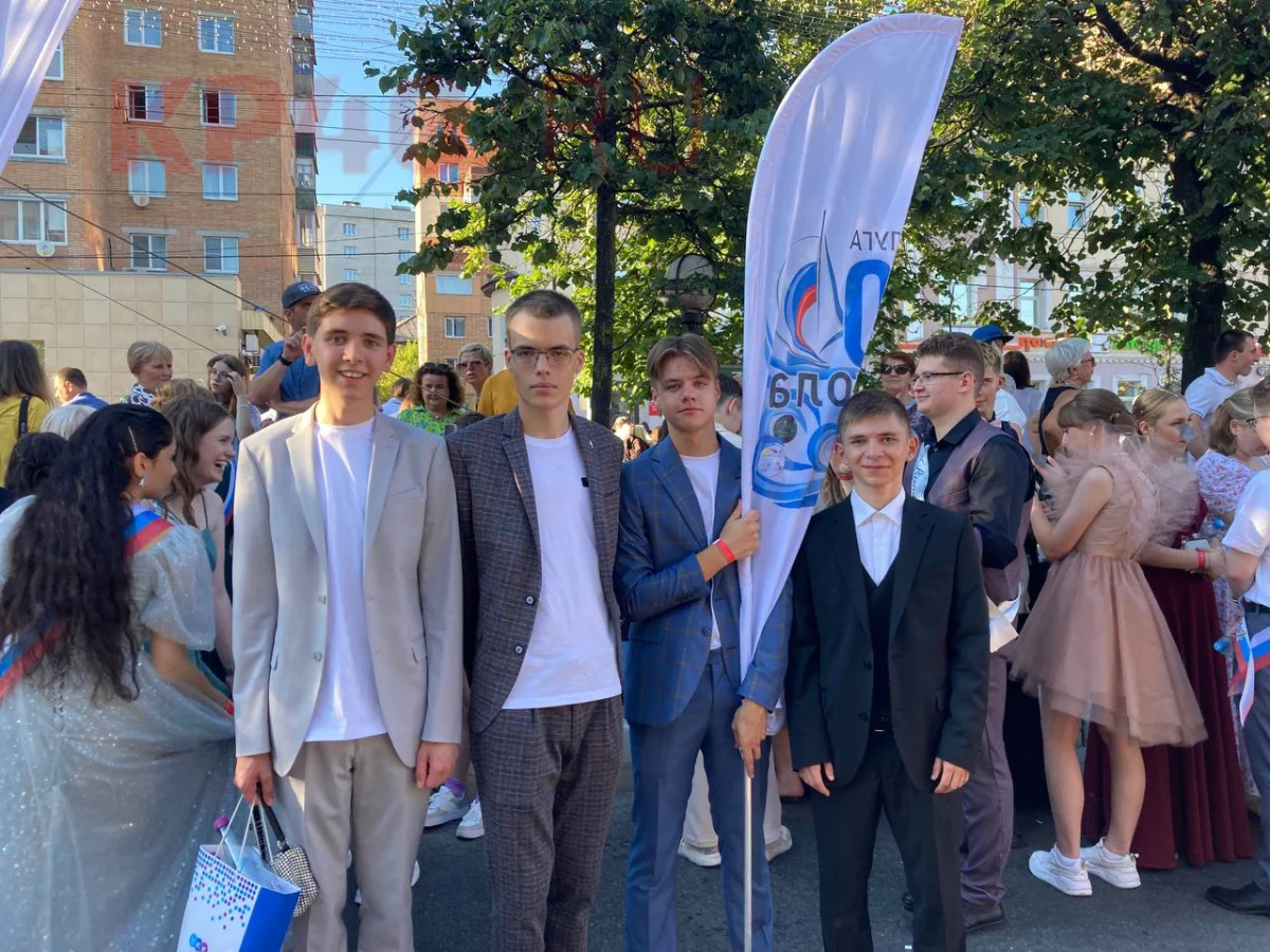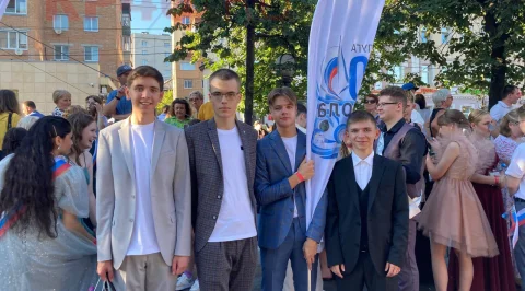 Колонна молодых нарядных людей была сформирована на площади Победы.
