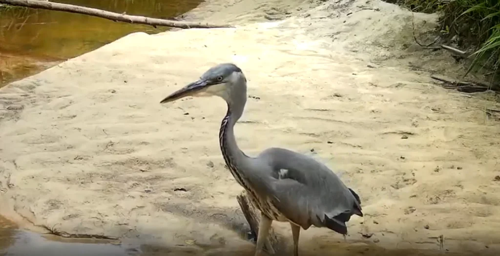 Серая цапля попала на видео в калужском лесу
