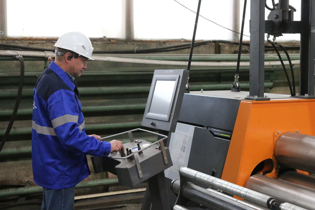 При входе в цех неизгладимое впечатление производят станки для вальцовки листов — они играючи сворачивают толстолистовой прокат в обечайки! Я лишь постоял за пультом, и этого хватило, чтобы ощутить титаническую машинную мощь.