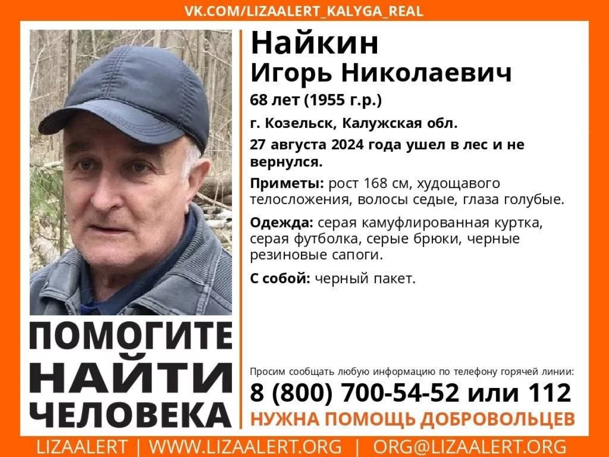 Как мы сообщали ранее, в Калуге жителей просят помочь найти пропавшего пенсионера.
