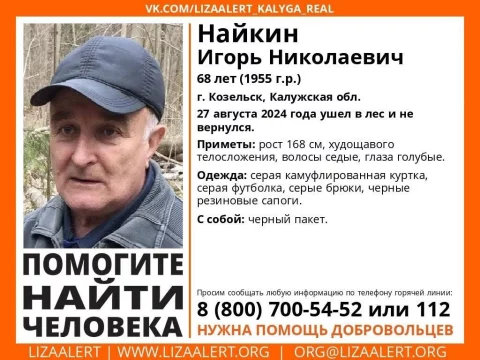 Поисковики «ЛизыАлерт» обратились к водителям Калужской области, которые могли проезжать по маршрутам г.Козельск- д.Оптина пустынь,г. Козельск- г.Сосенский Козельского р-на, Калужской обл 27.08.24 с 07:00 до 00:00.