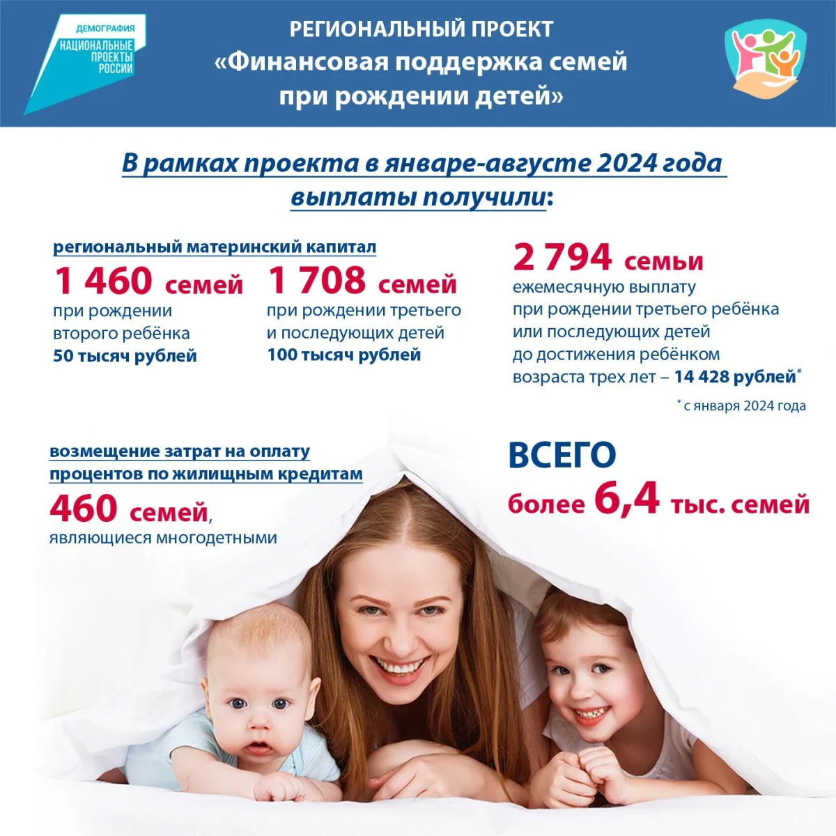 Кроме того, 460 многодетных семей смогли возместить затраты по уплате процентов за пользование кредитами.