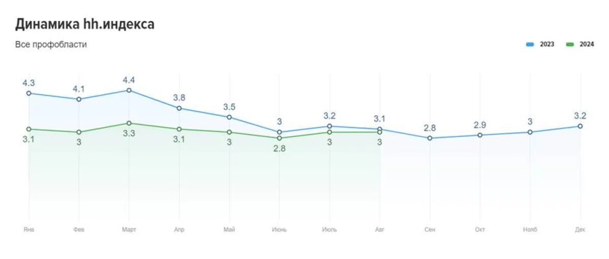 В августе 2023 года конкуренция составляла 3,1 резюме на одну вакансию.