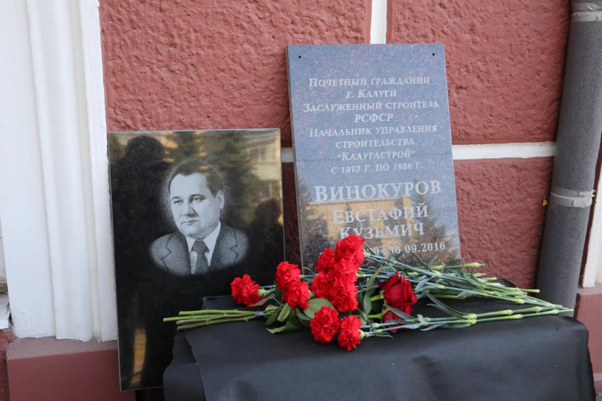 Евстафий Кузьмич Винокуров свою трудовую деятельность начал в 1956 году в тресте «Калугашахтострой». Работал на ответственных руководящих должностях строительного комплекса Калуги, а также заведовал отделом строительства Калужского обкома КПСС. Награждён Орденом Трудового Красного Знамени, Почётными знаками «Шахтёрская слава», Медалью «За доблестный труд», Почетным званием «Заслуженный строитель РСФСР» и Медалью «Ветеран труда». В 2021 году Е.К. Винокурову было присвоено звание «Почётный гражданин города Калуги».