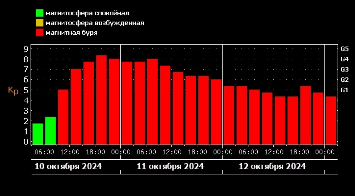 - Сегодня возможен повтор бурь высшего 5 уровня, сравнимых с событиями мая этого года, - говорится в комментарии организации.