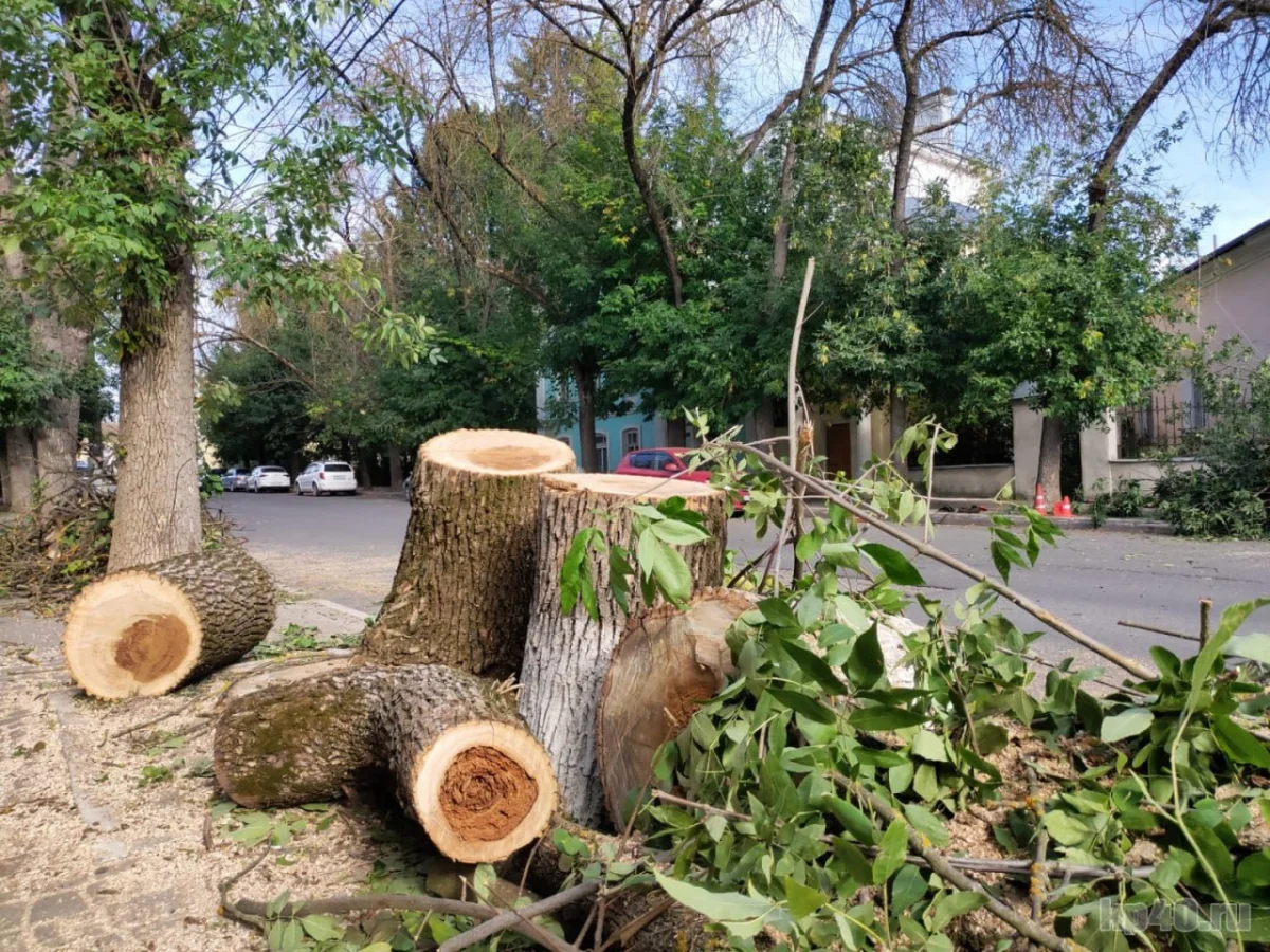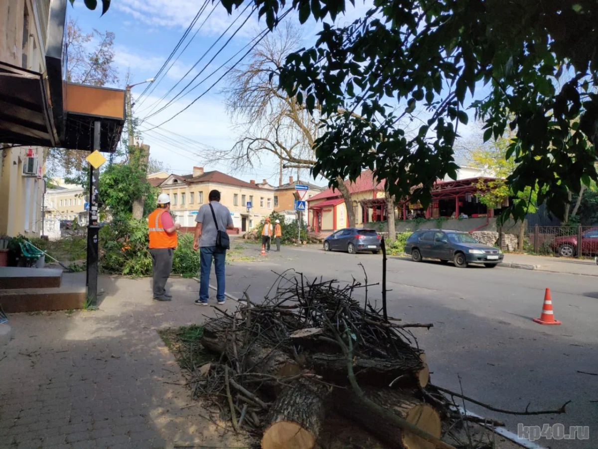 Сетовали калужане и на то, что срубленные деревья долгое время остаются на тротуарах. По словам первого заместителя городского головы Александра Серякова, сегодня на улицах Калуги работают две бригады.