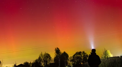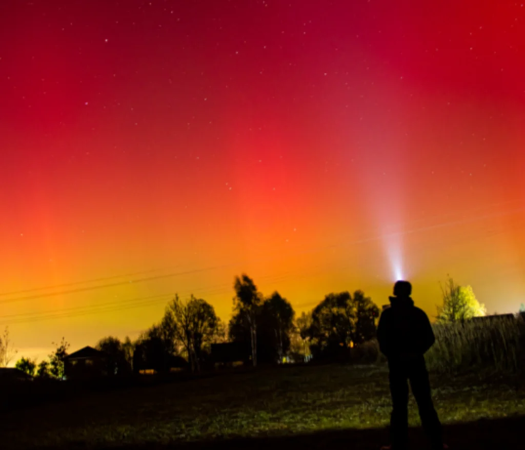 Над Калужской областью полыхало северное сияние