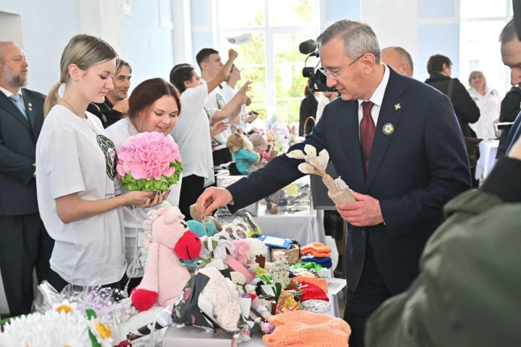 Глава региона приобрел несколько сувениров на благотворительной ярмарке в Танеевском зале.