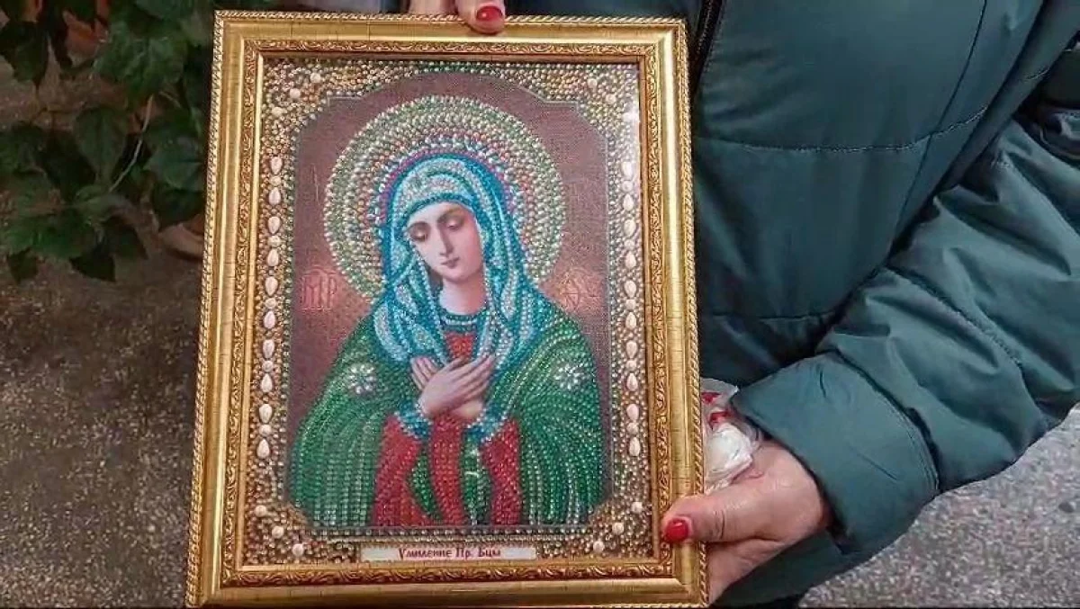 В Калужской области женщина передала освященную икону ручной работы для бойцов на фронт