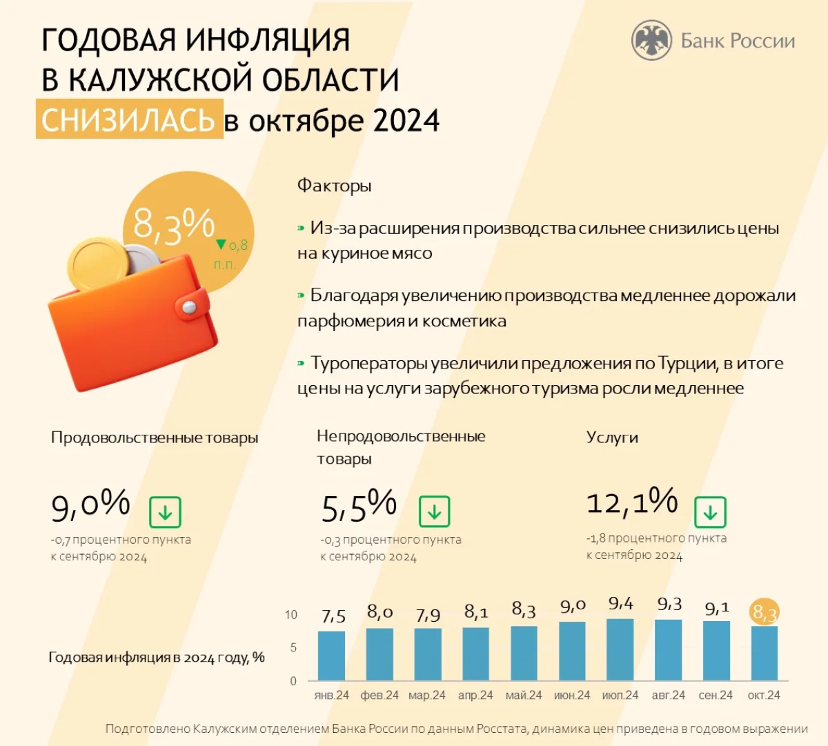 Годовая инфляция по итогам второго осеннего месяца составила 8,3%. В сентябре этот показатель равнялся 9,1%.