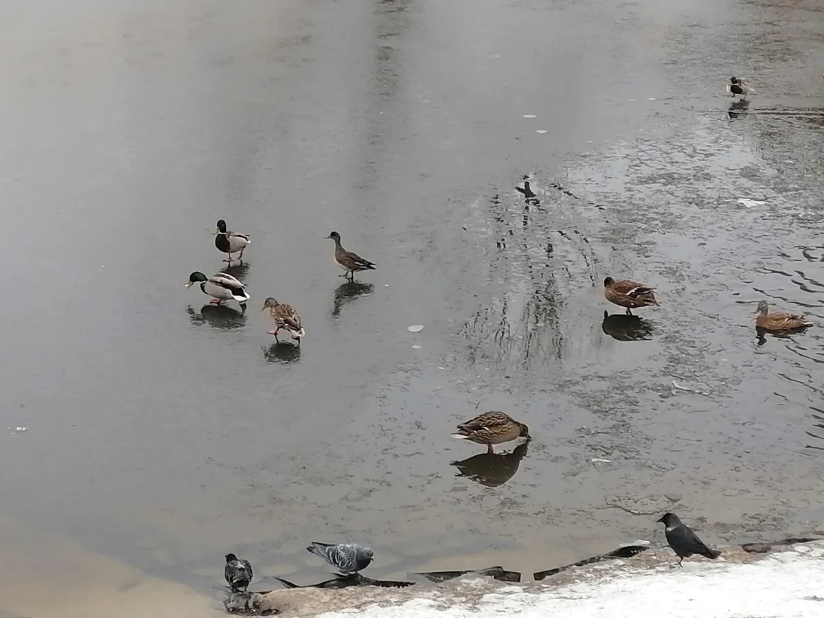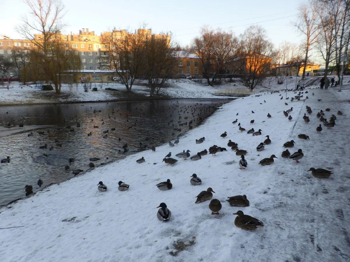 В Калуге больше 300 уток собралось на замерзающем Пуховском пруду