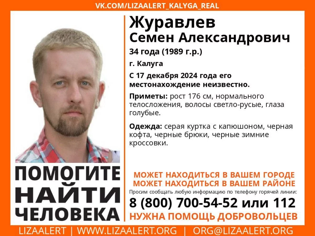 Во вторник, 17 декабря, в областном центре пропал Семен Журавлев. Об этом сообщает поисково-спасательный отряд "ЛизаАлерт".
