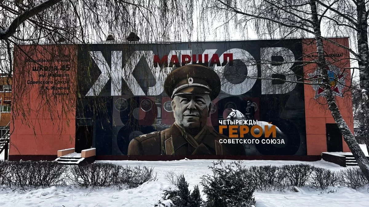 В Калуге доделали мурал с Жуковым на фасаде школы №45