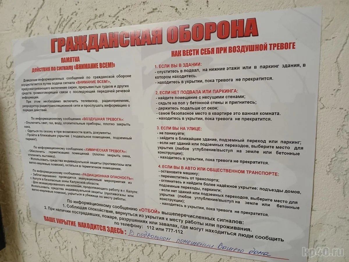 В подъездах Калуги развесили памятки на случай воздушной тревоги