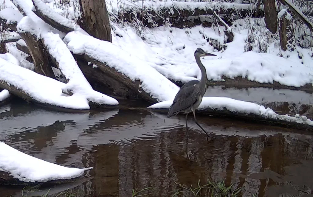В Калужской области впервые зимой встретили серую цаплю