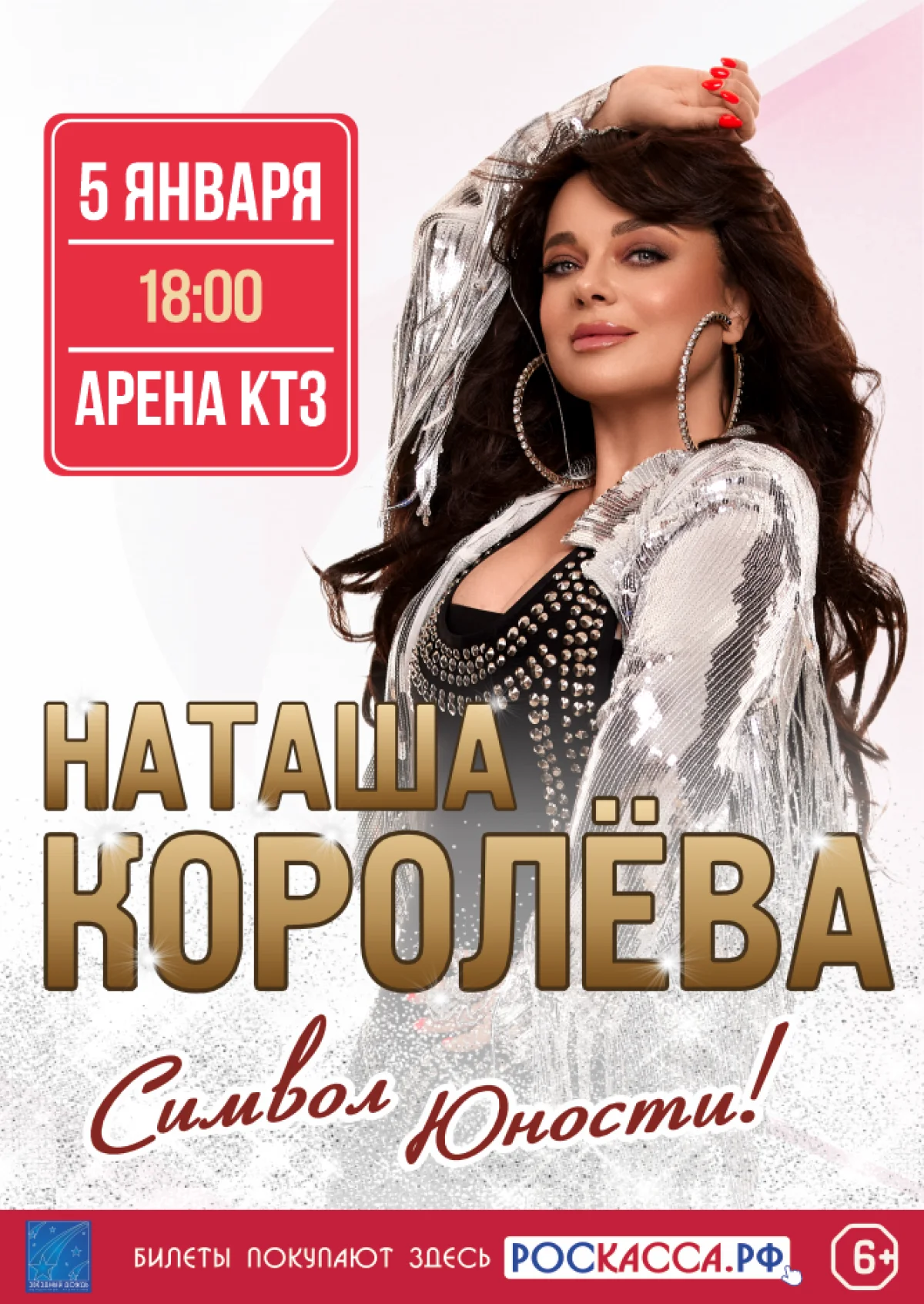 Яркое музыкальное событие в Калуге: 5 января на сцене Арены КТЗ выступит заслуженная артистка России Наташа Королёва! Зрителей ждет чарующая программа «Символ юности!».