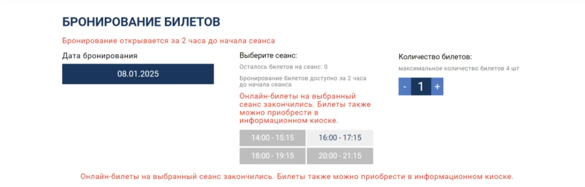 Люди пишут: «Когда открывается запись, сразу же нет билетов ни на 14:00, ни на 16:00. Купить онлайн нереально. Мы пришли в 12:00 и отстояли в очереди, чтобы попасть на каток в 14:00».
