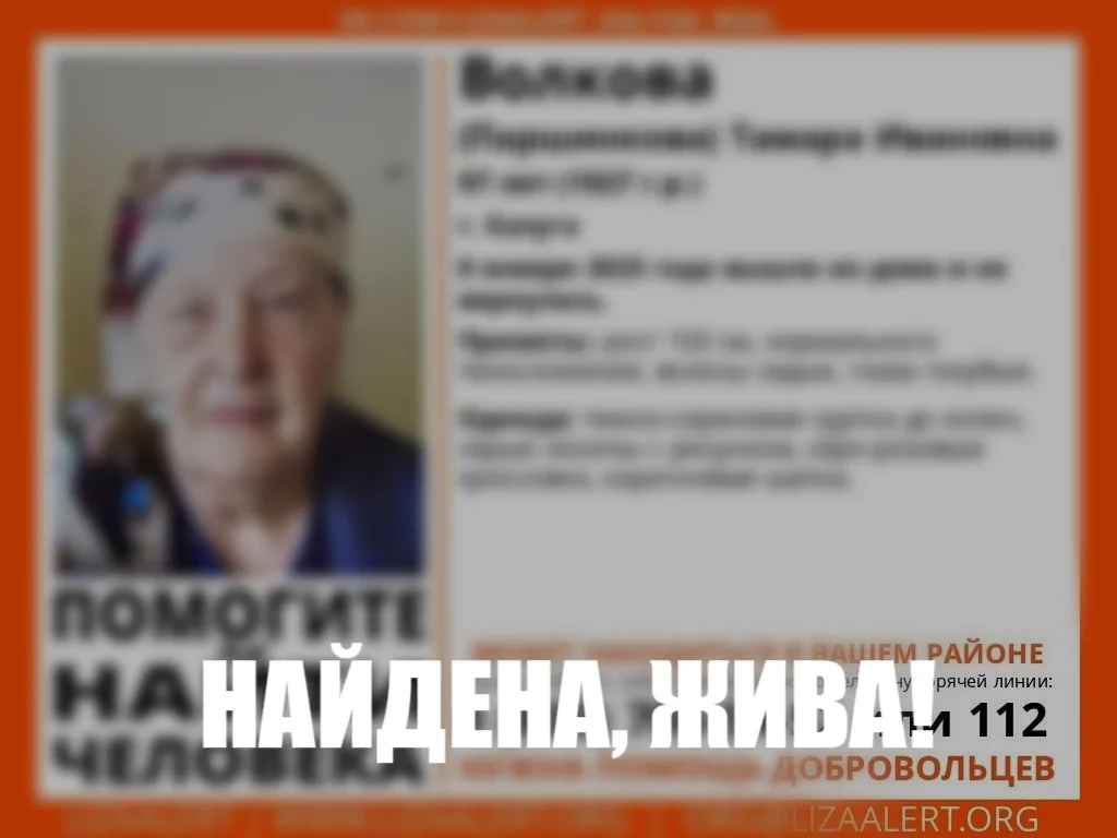 В Калуге нашли живой пропавшую 97-летнюю женщину