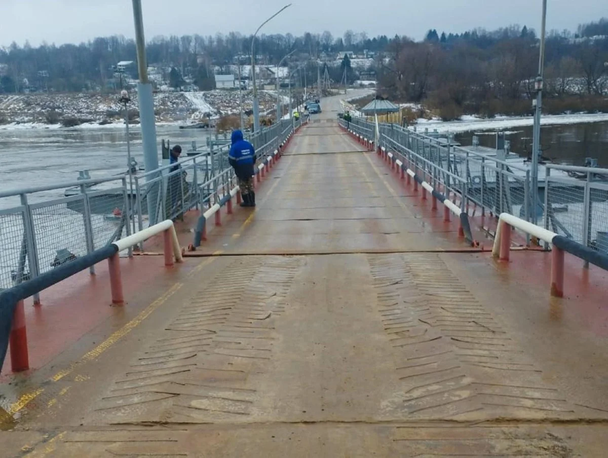 Наплавной мост в Ферзиковском районе, близ поселка Дугна разведен для пропуска шуги.