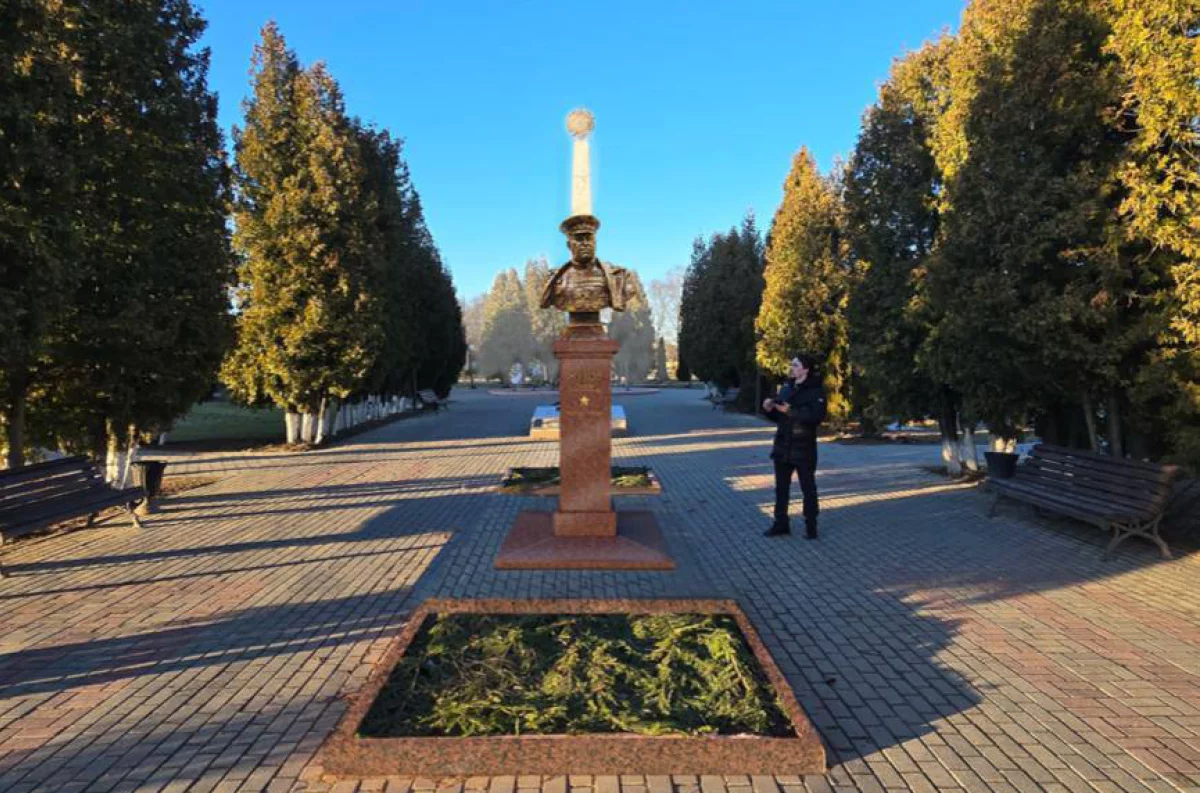 Памятник будет состоять из гранитного основания и бронзового бюста. Общая высота - около трех метров.