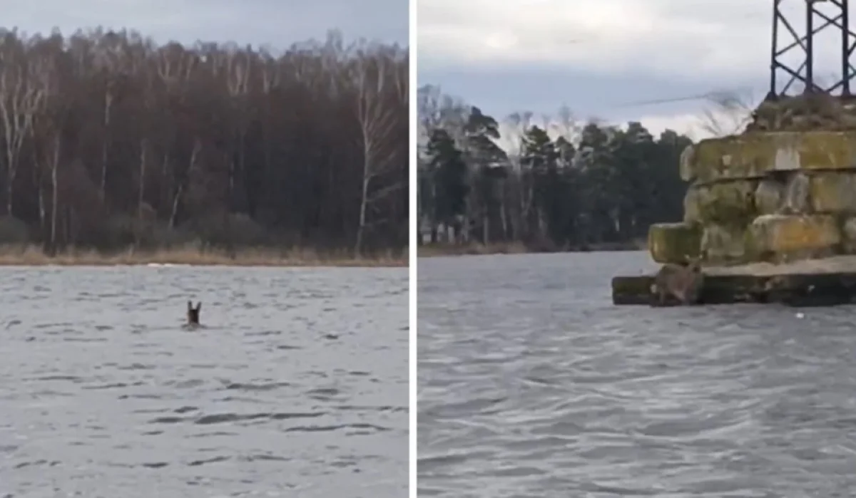 Примерно в 50 метрах от берега животное заметили в Ломпади на территории Людиново.